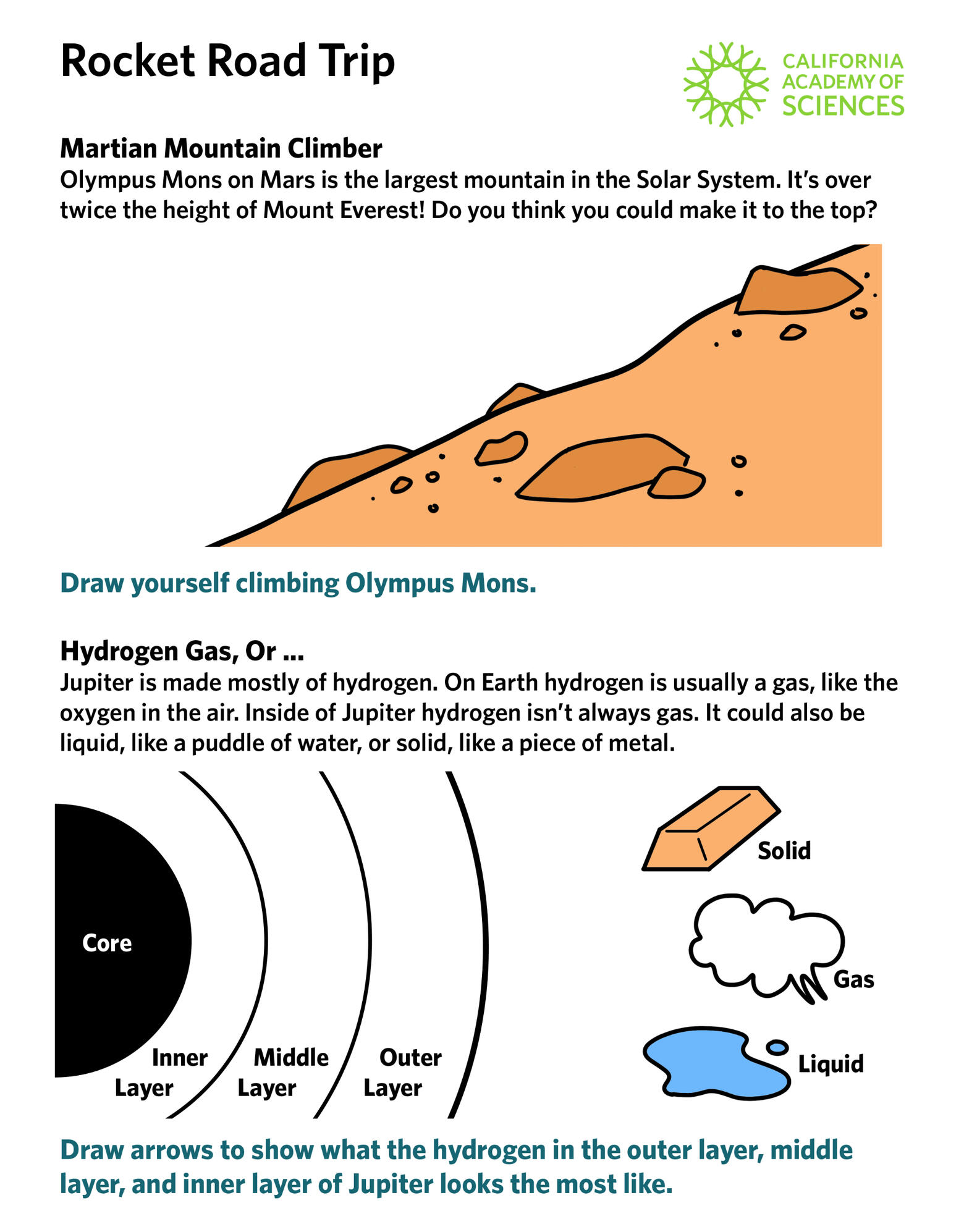Work done for the Morrison Planetarium in the California Academy of Sciences. Includes activities for the Science at Home program, coloring sheets, and activity sheets created to accompany Planetarium shows, created with universal design in mind to help a wide range of museum guests engage with the show's content.Role: Illustration, copywriting, design
